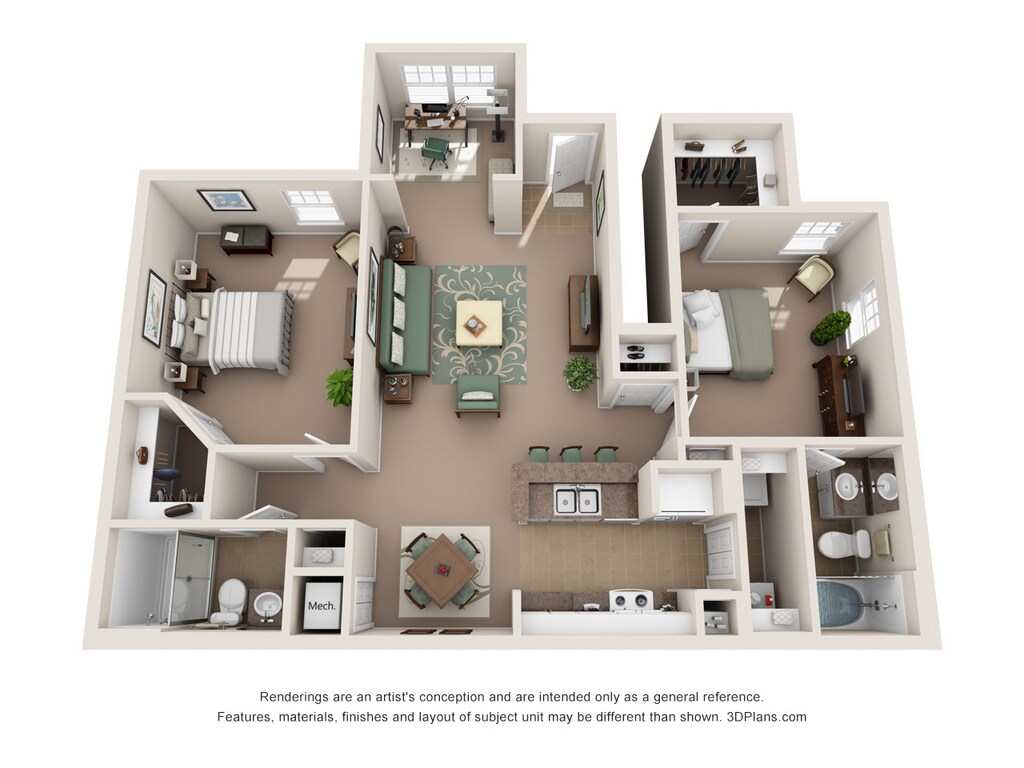 2 Dormitorios, 2 Baños, 1155 pies²Disponible AhoraGalería del Modelo