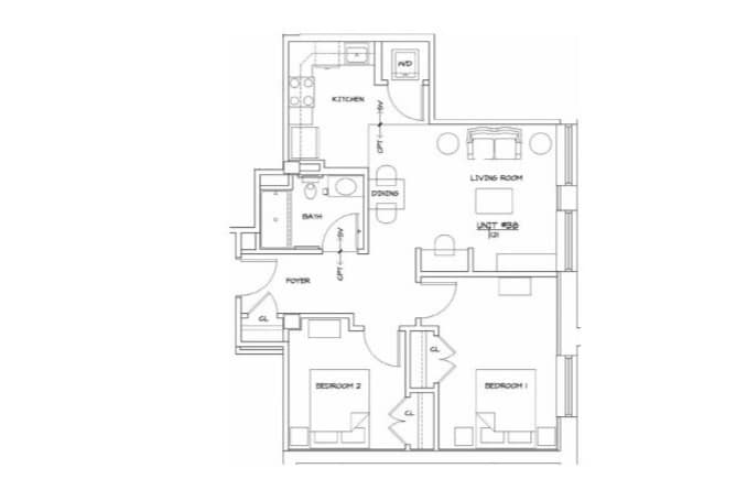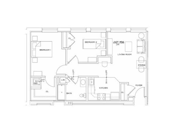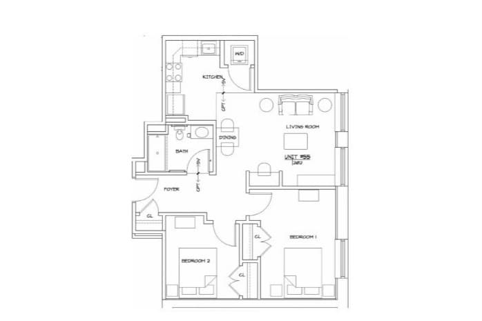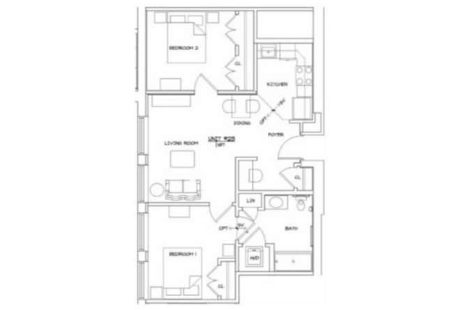 2 Dormitorios, 1 Baño, 818 pies²Galería del Modelo