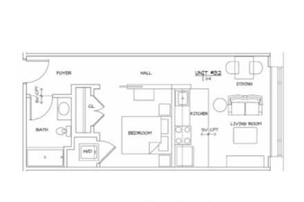 Estudio, 1 Baño, 669 pies²Galería del Modelo