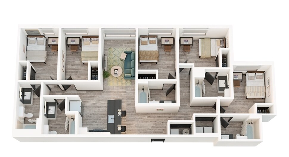 4x4B - Plano 1 Unidad de apartamento: PrivateModelo de apartamento: 4x4B4 Dormitorios, 4 Baños, 1263 sq ftDisponible August 18, 20264x4E 2