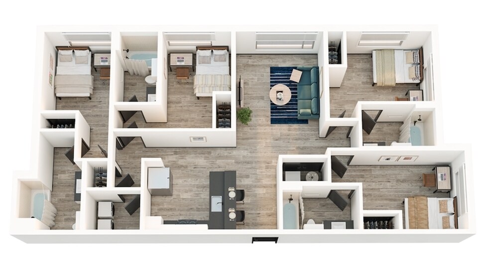 Modelo de apartamento: 4x4D4 Dormitorios, 4 Baños, 1262 sq ftDisponible August 18, 2026![]()