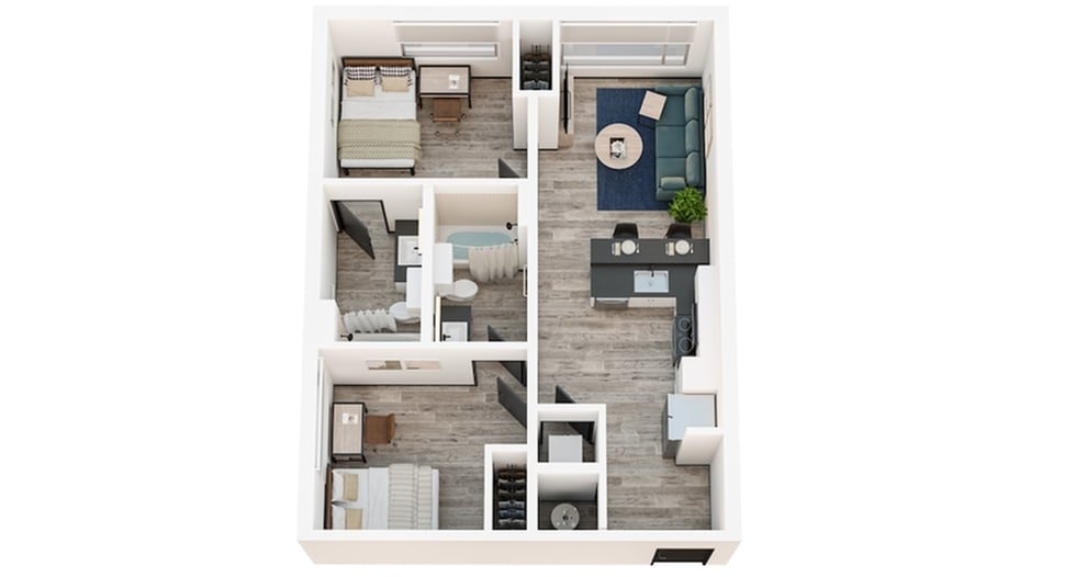 2x2A - Plano 1 Unidad de apartamento: PrivateModelo de apartamento: 2x2A2 Dormitorios, 2 Baños, 717 sq ftDisponible August 18, 20262x2B