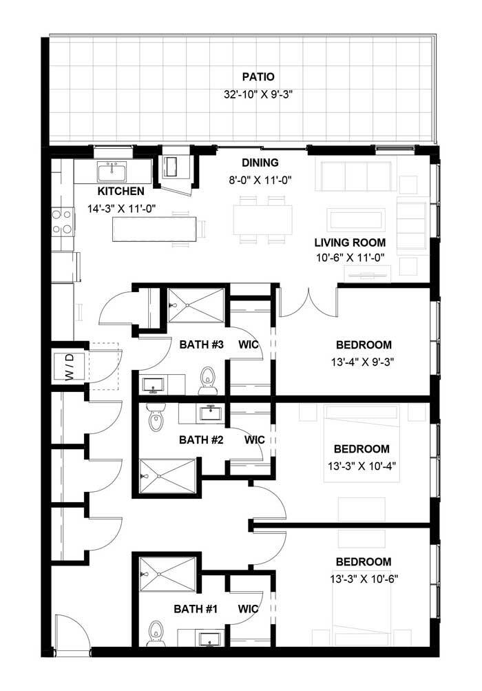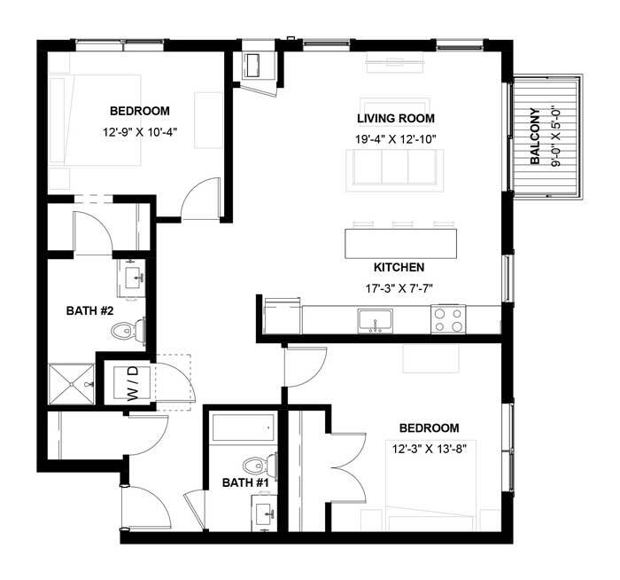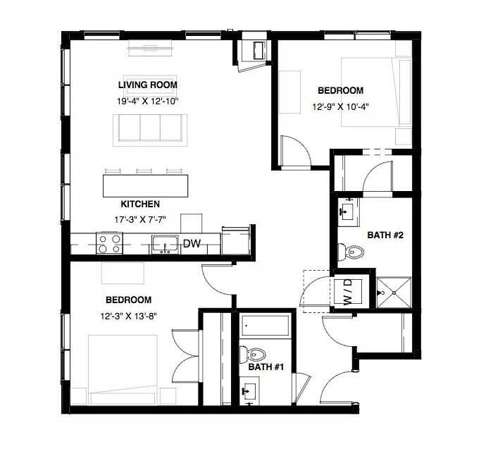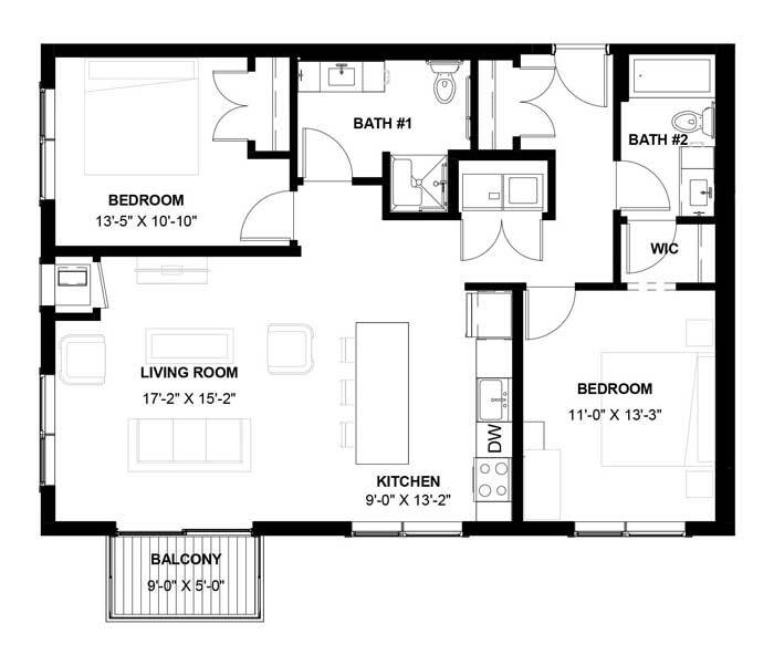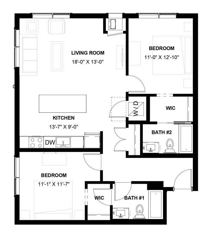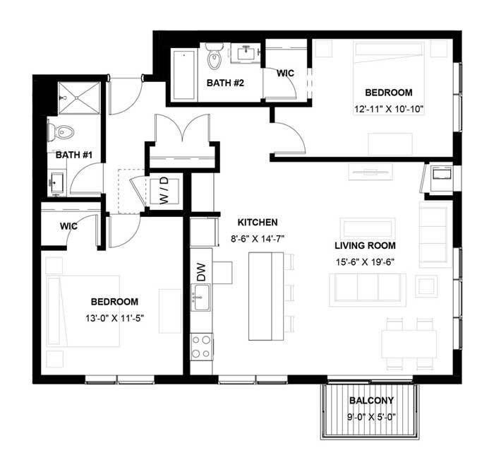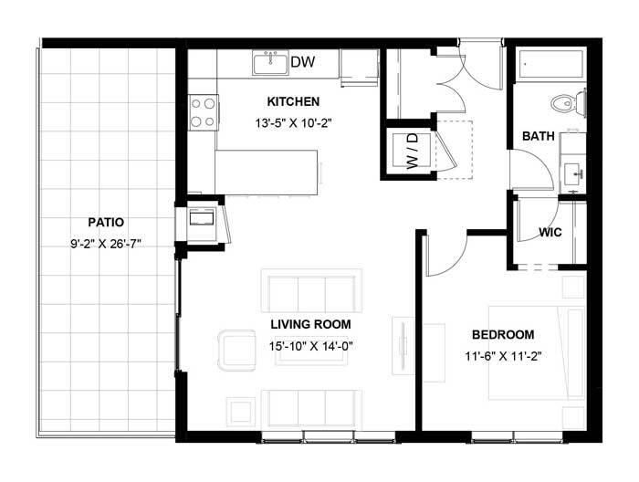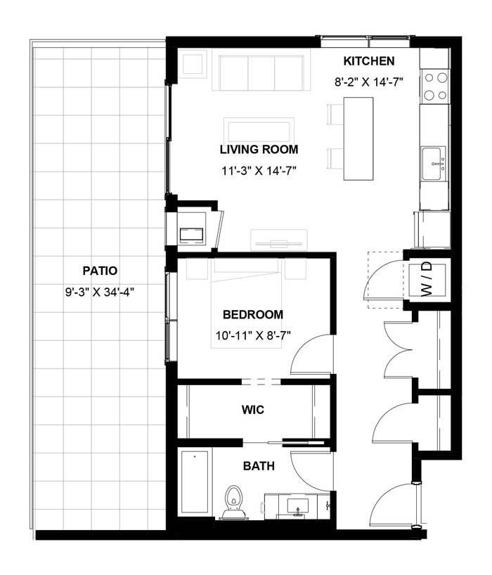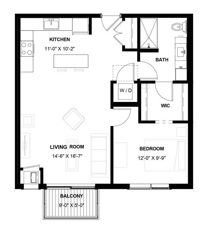 1 Dormitorio, 1 Baño, 1085 pies²El más grandeEsta opción tiene las unidades más grandes para este modeloGalería del Modelo