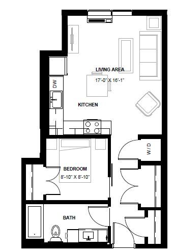 1 Dormitorio, 1 Baño, 817 pies²Galería del Modelo