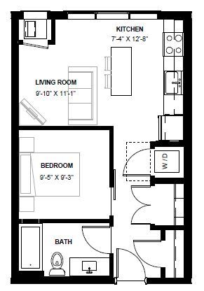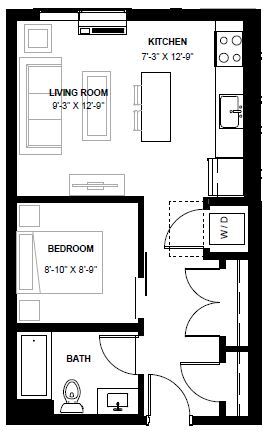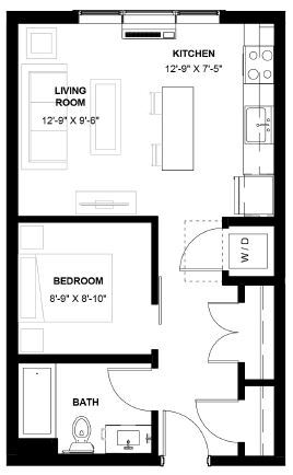 1 Dormitorio, 1 Baño, 499 pies²Galería del Modelo