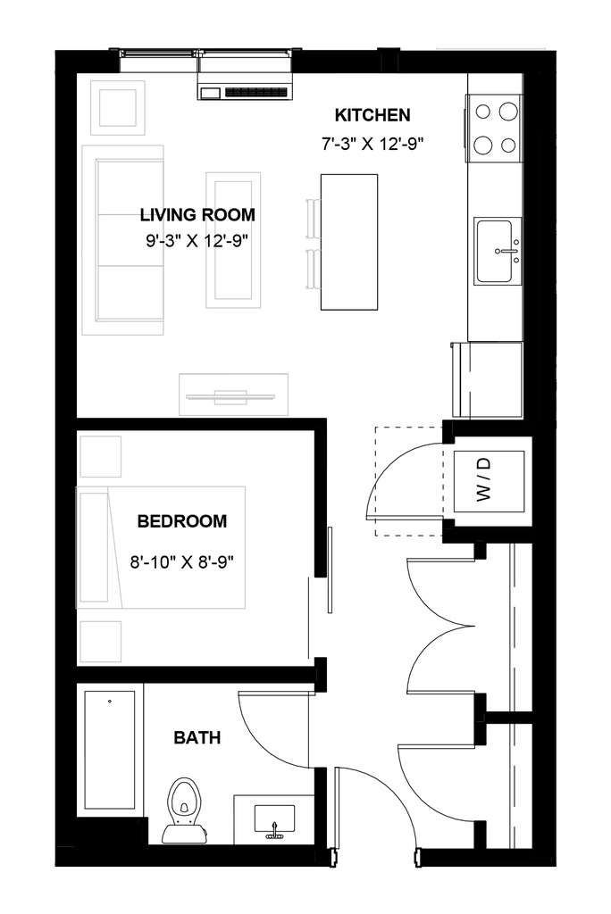 1 Dormitorio, 1 Baño, 808 pies²Galería del Modelo