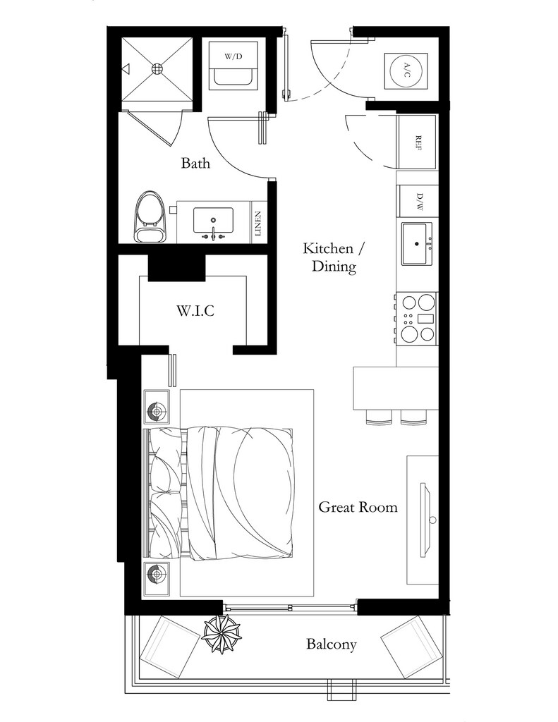Estudio, 1 Baño, 530 pies²El más grandeEsta opción tiene las unidades más grandes para este modeloGalería del Modelo
