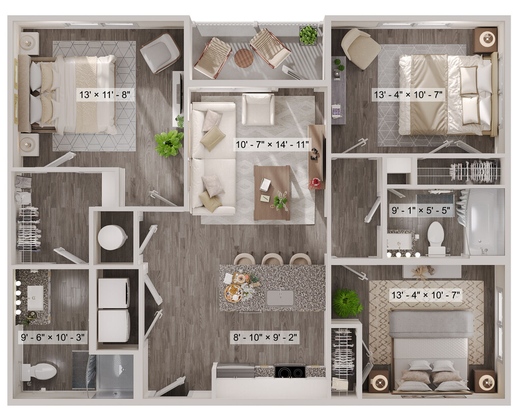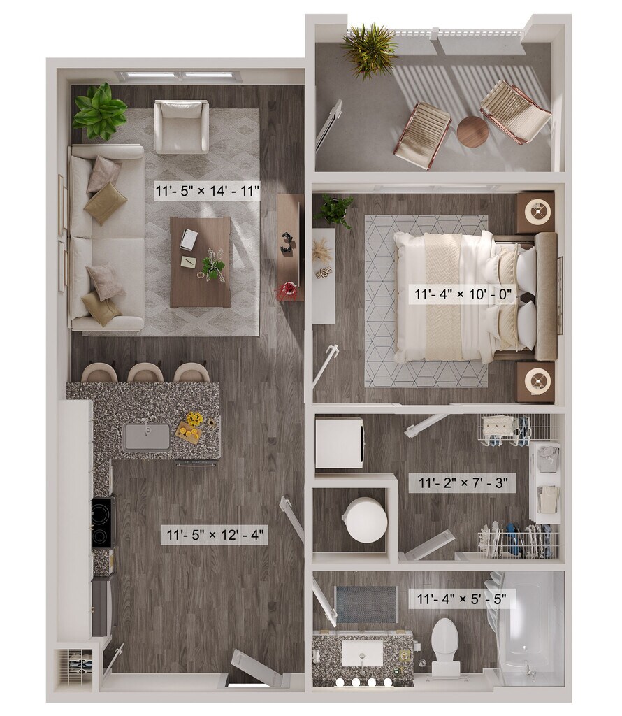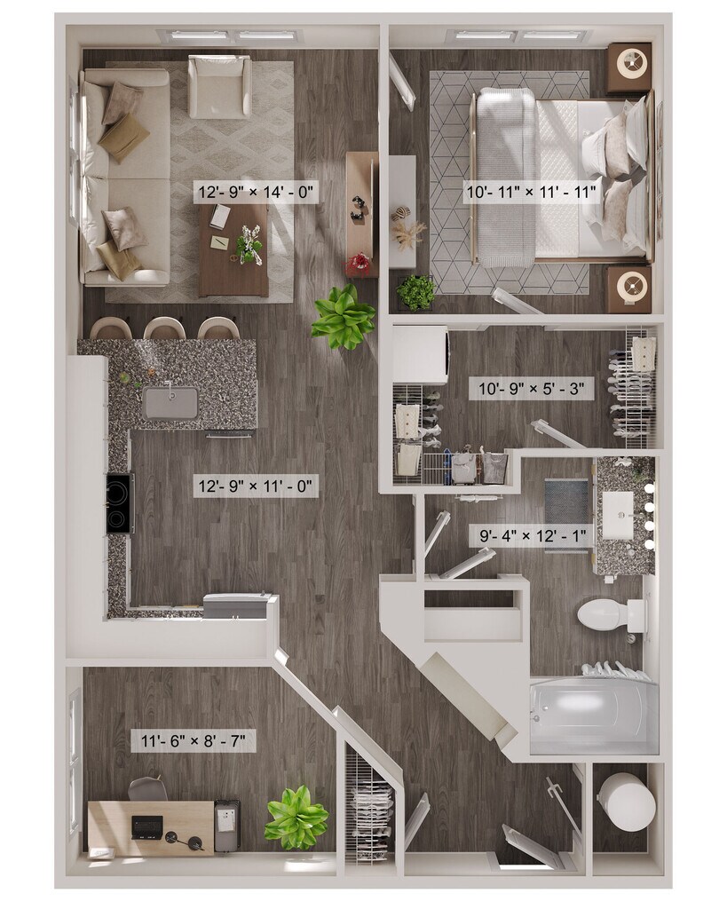 1 Dormitorio, 1 Baño, 675 pies²Disponible AhoraGalería del Modelo