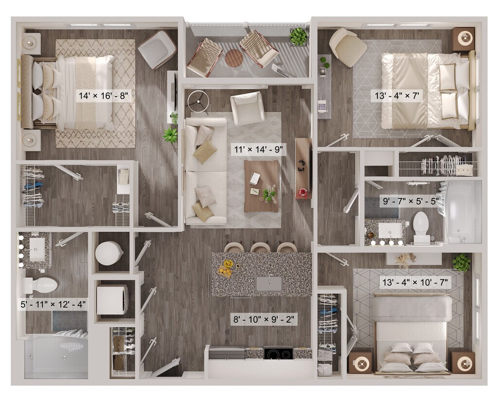 Modelo de apartamento: The VistaDesde $1,6001 Dormitorio, 1 Baño, 675 sq ftDisponible Ahora![]()