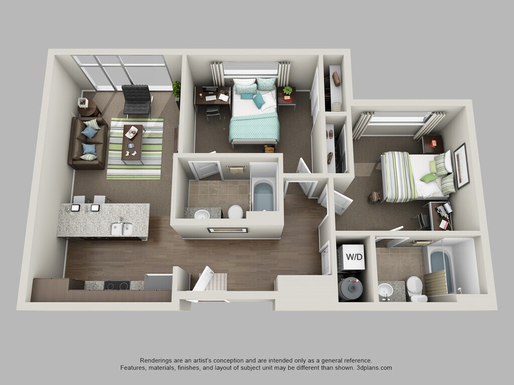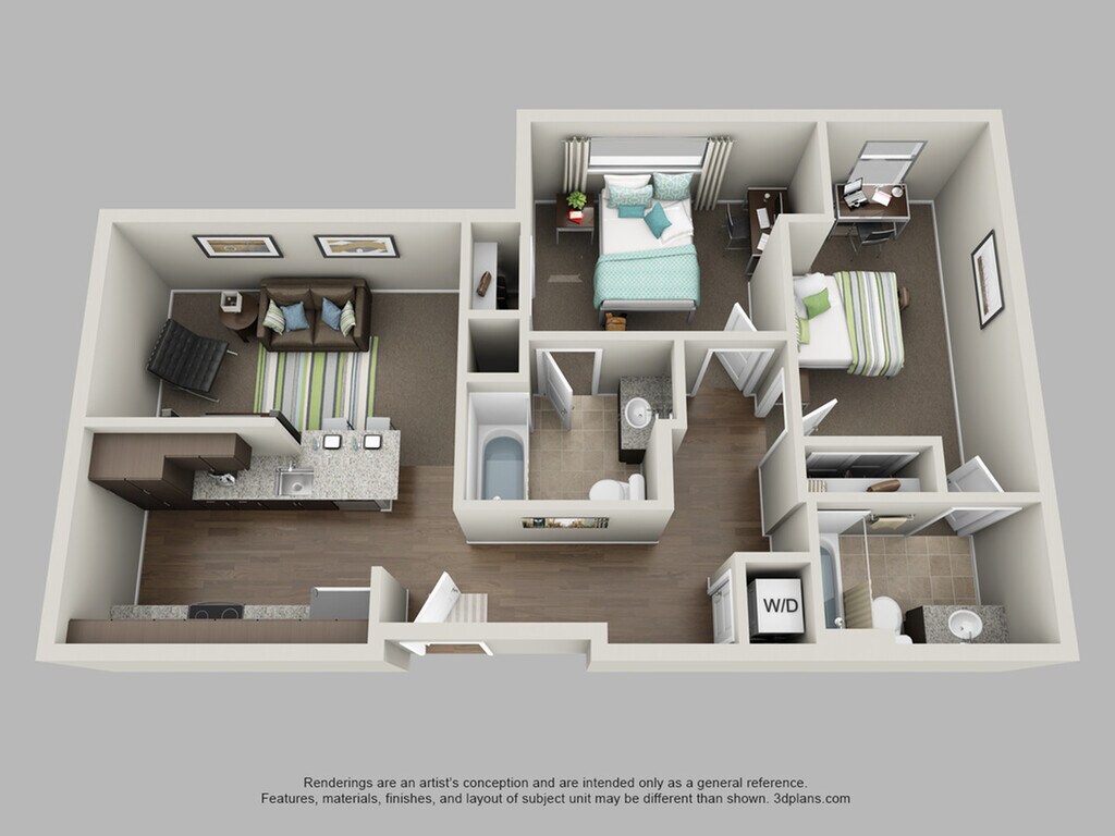 Modelo de apartamento: B2Desde $1,4752 Dormitorios, 2 Baños, 872 sq ftDisponible Ahora![]()
