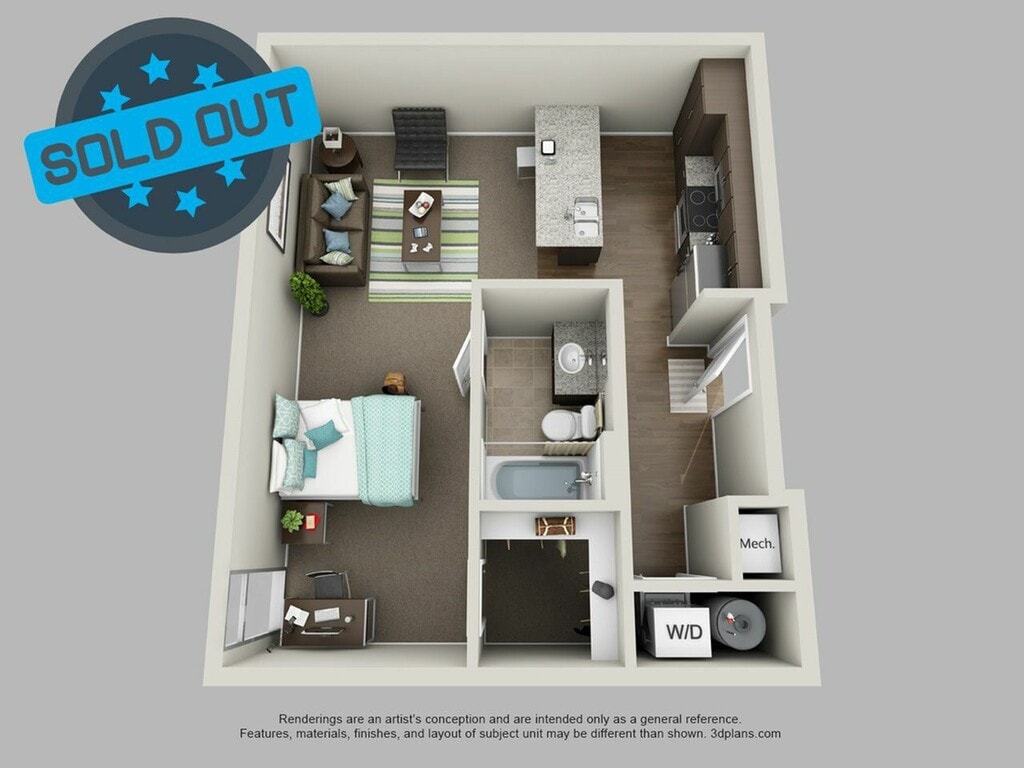 Estudio, 1 Baño, 756 pies²Disponible AhoraGalería del Modelo