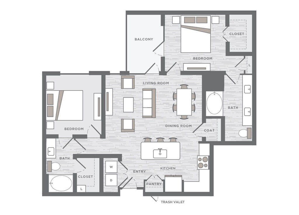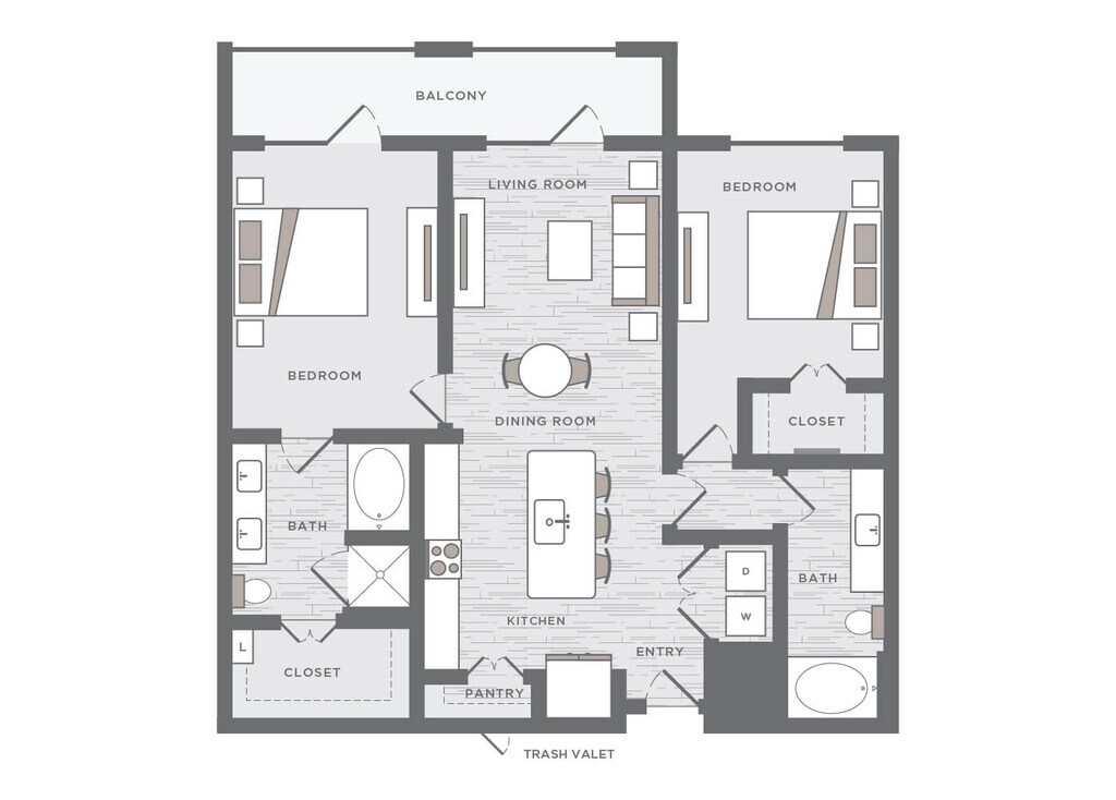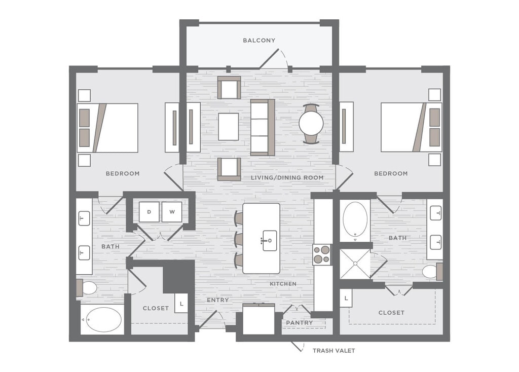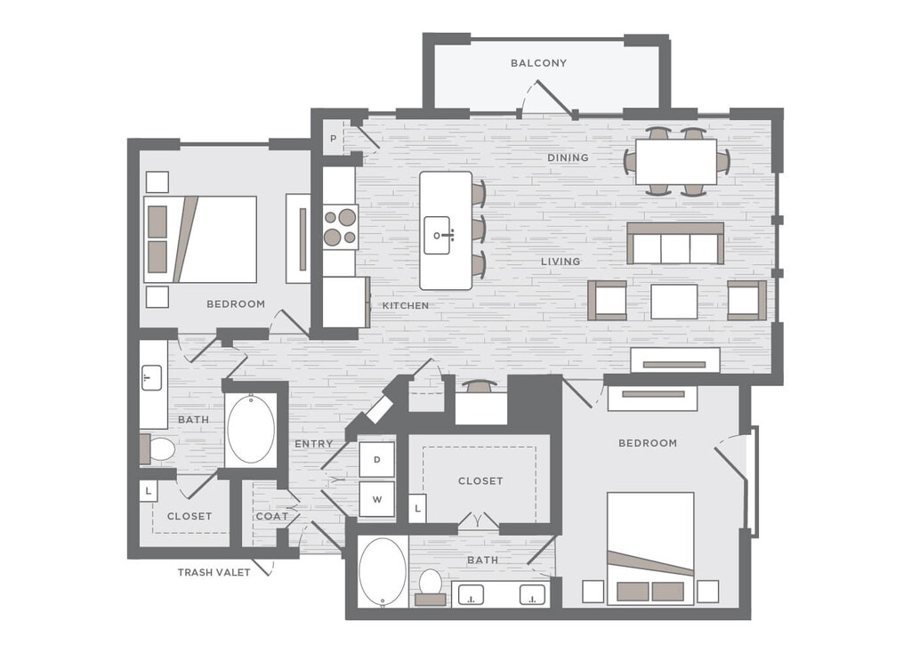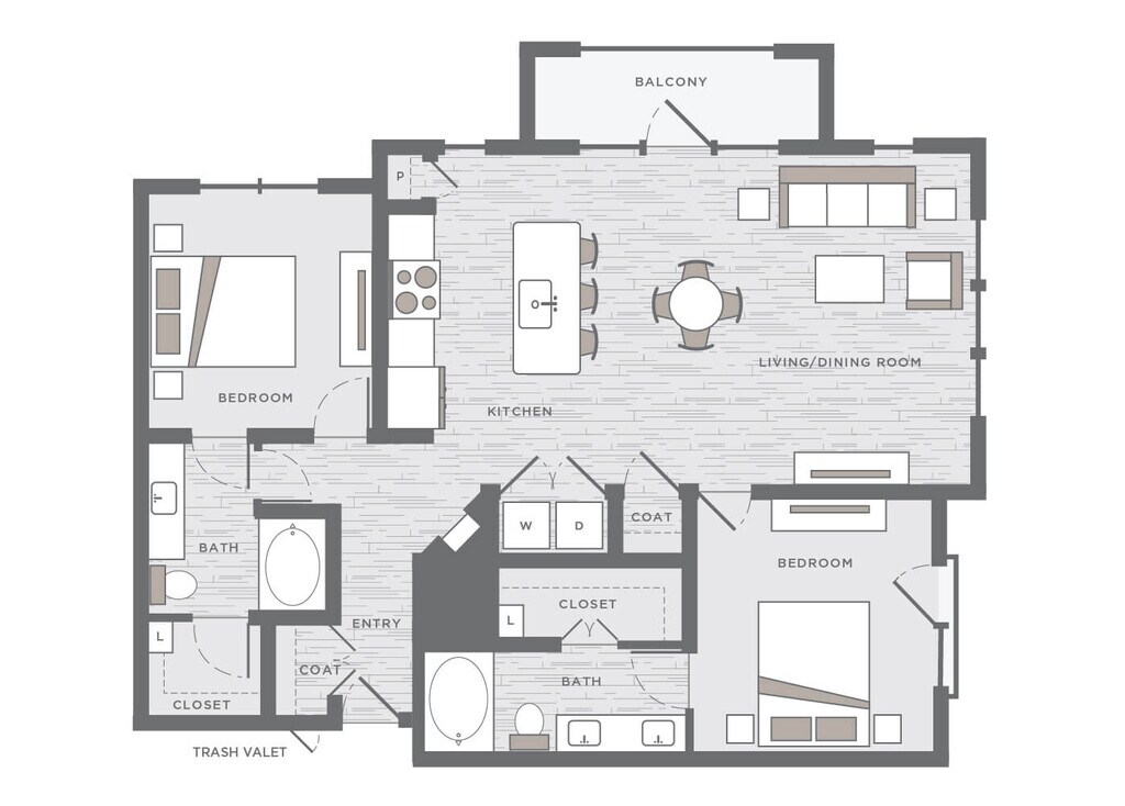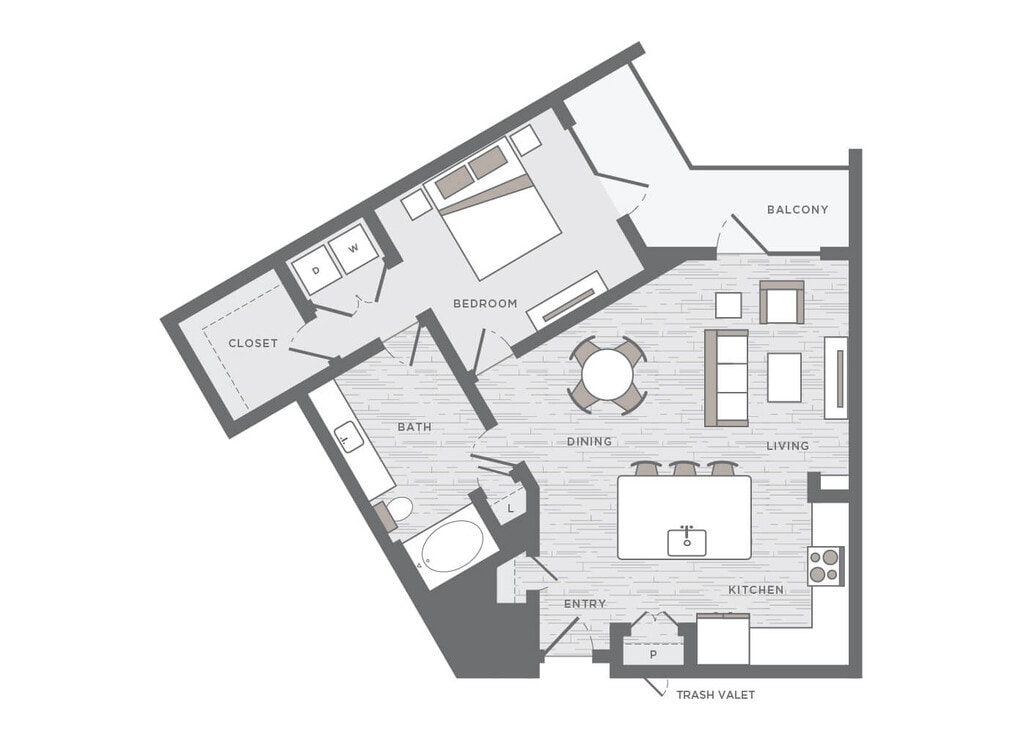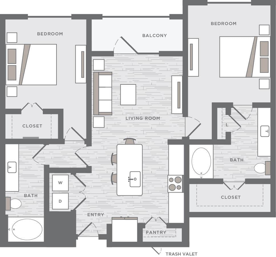 Modelo de apartamento: A5Desde $1,6901 Dormitorio, 1 Baño, 920 sq ftDisponible Ahora![]()