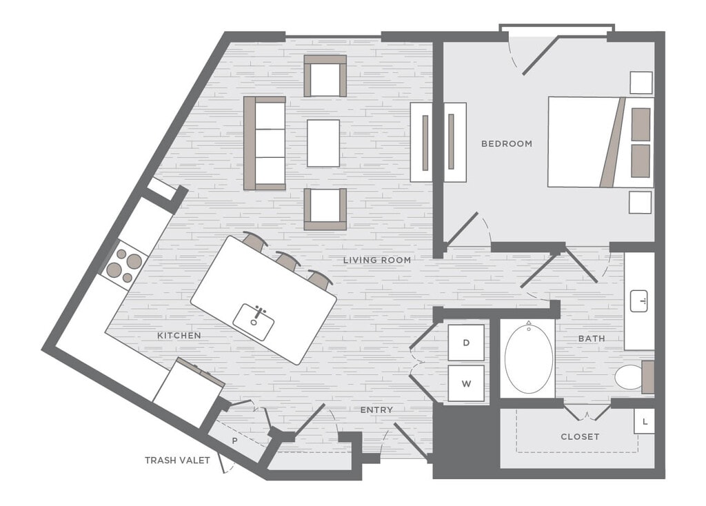 1 Dormitorio, 1 Baño, 789 pies²Galería del Modelo
