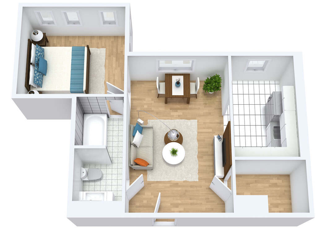 1 Dormitorio, 1 Baño, 588 pies²Disponible AhoraGalería del Modelo