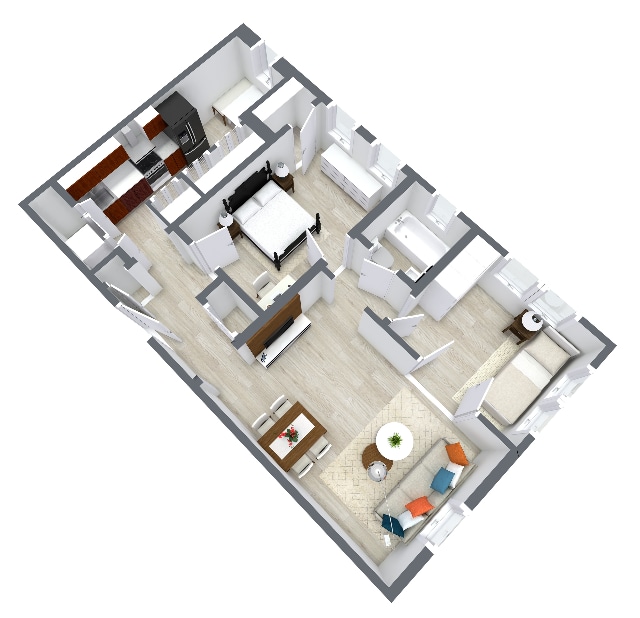 Modelo de apartamento: B3Desde $1,6501 Dormitorio, 1 Baño, 588 sq ftDisponible Ahora![]()