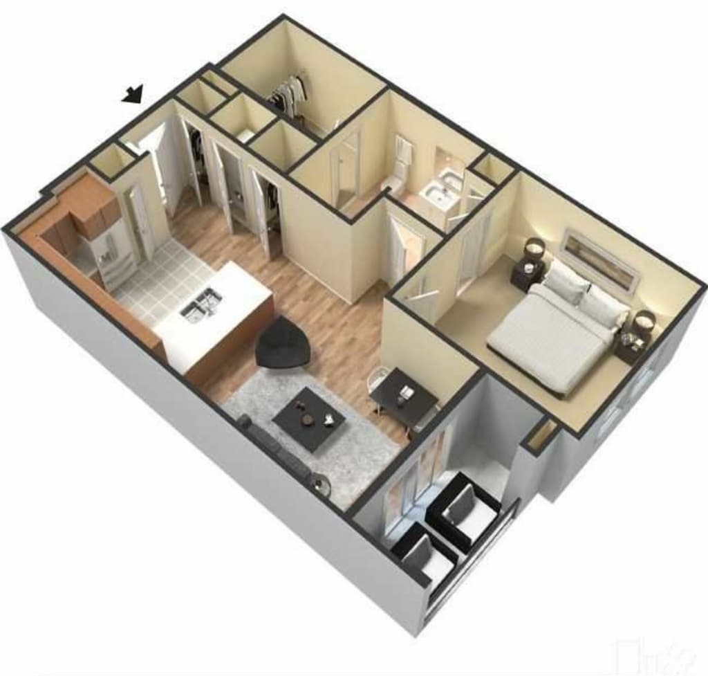 1 Dormitorio, 1 Baño, 788 pies²Disponible AhoraGalería del Modelo