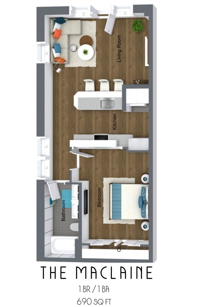 1 Dormitorio, 1 Baño, 601-690 pies²Disponible AhoraGalería del Modelo