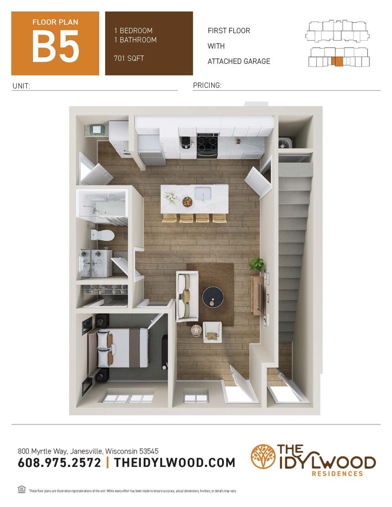 1 Dormitorio, 1 Baño, 701 pies²Disponible AhoraGalería del Modelo
