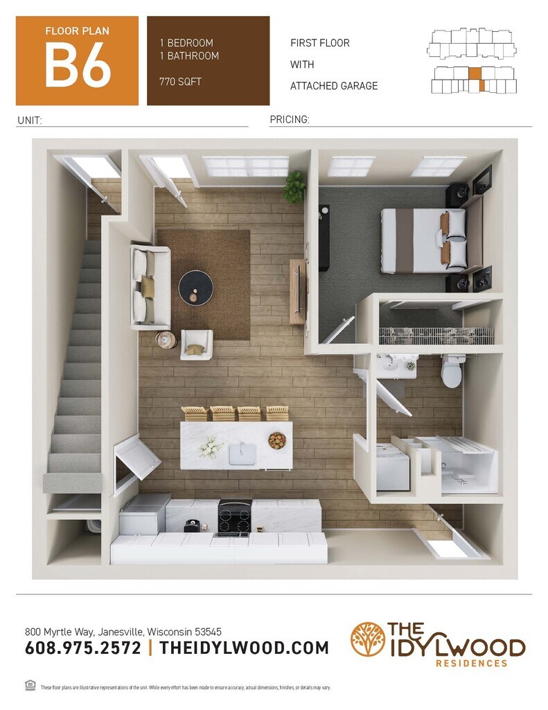 1 Dormitorio, 1 Baño, 770 pies²Disponible AhoraGalería del Modelo