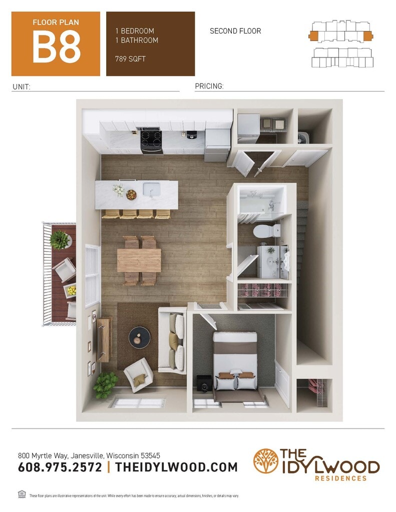 1 Dormitorio, 1 Baño, 789 pies²Disponible AhoraGalería del Modelo