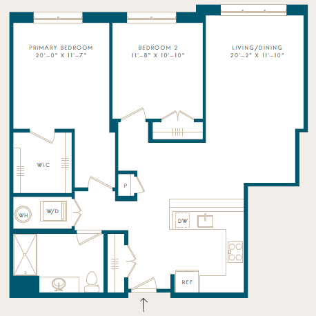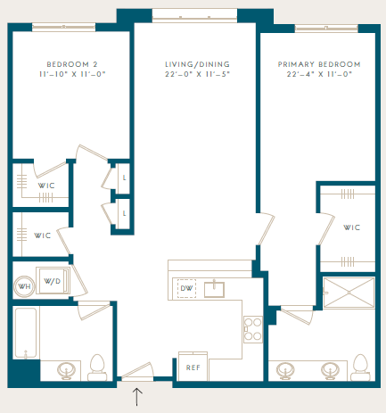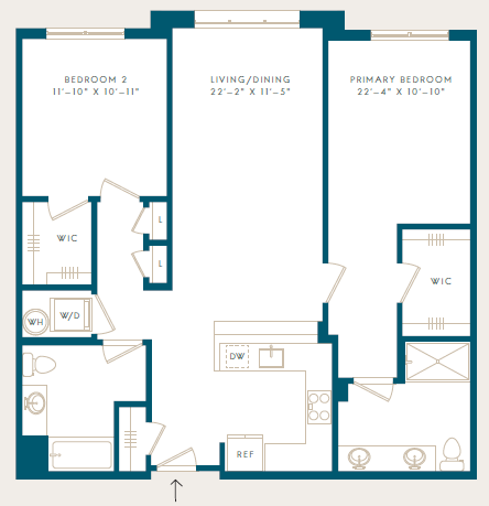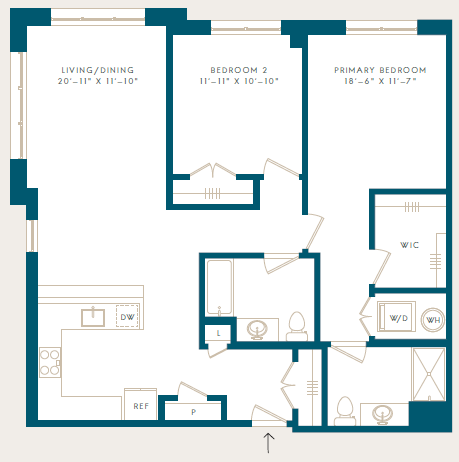 A5 - Plano 2 Unidad de apartamento: 310Modelo de apartamento: A5$2,8951 Dormitorio, 1 Baño, 862 sq ftDisponible AhoraPlano: A2