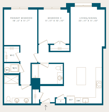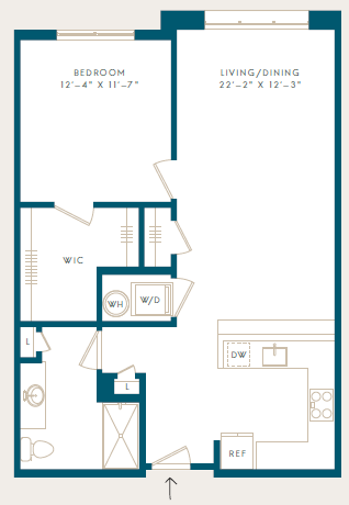 Modelo de apartamento: A2Desde $3,2251 Dormitorio, 1 Baño, 850 sq ftDisponible Ahora![]()