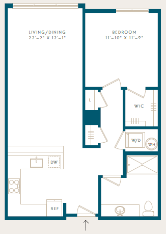 Modelo de apartamento: A3Desde $2,8501 Dormitorio, 1 Baño, 852 sq ftDisponible Ahora![]()