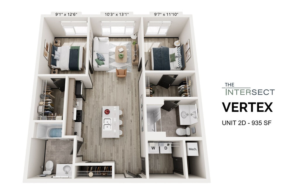 Modelo de apartamento: MeridianDesde $1,4381 Dormitorio, 1 Baño, 639 sq ftDisponible May 1, 2026![]()