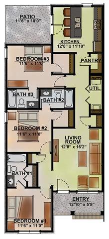 3 Dormitorios, 3 Baños, 1225 pies²Detalles de Diponibilidad