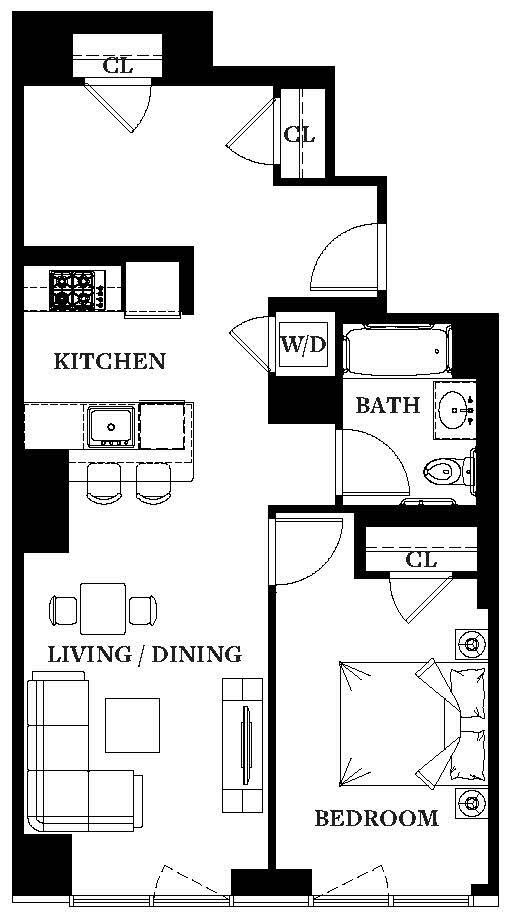 1 Dormitorio, 1 Baño, 611 pies²Disponible AhoraGalería del Modelo