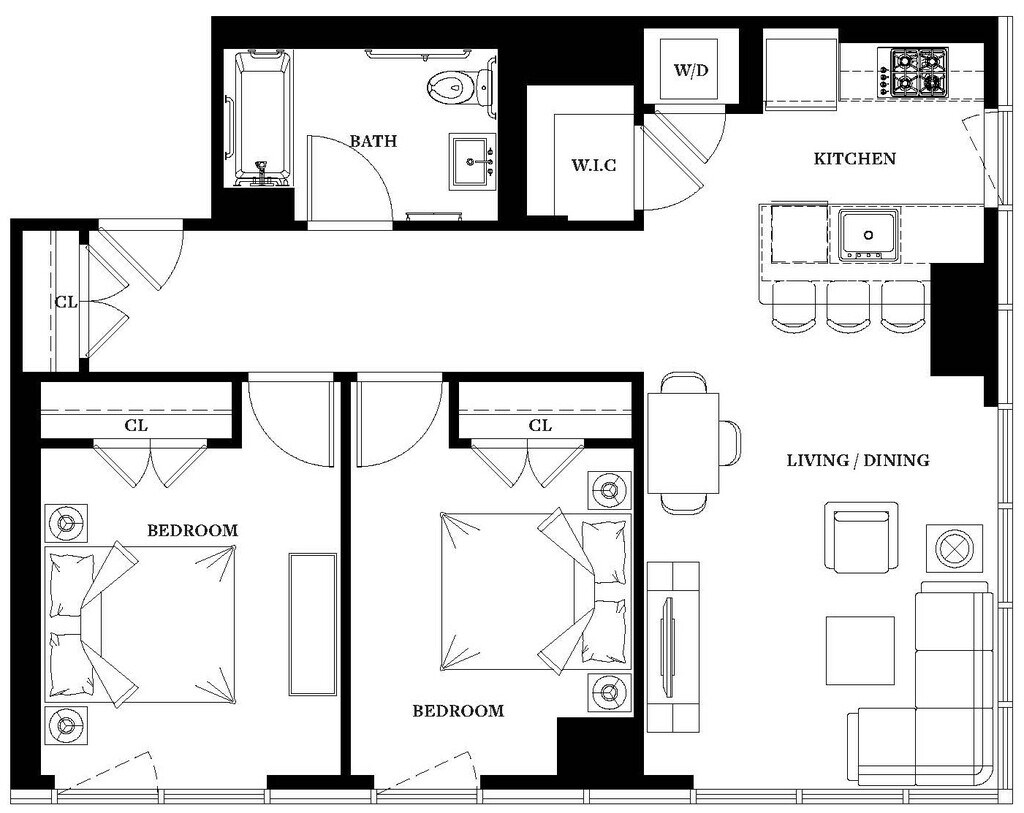 1 Dormitorio, 1 Baño, 772 pies²Disponible AhoraEl más grandeEsta opción tiene las unidades más grandes para este modeloGalería del Modelo