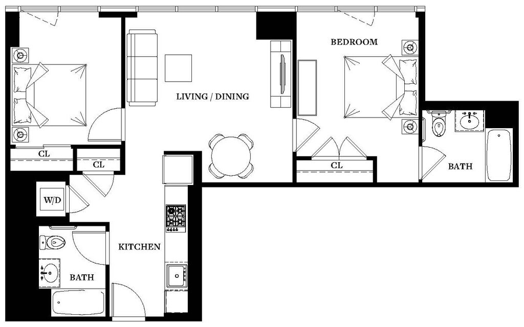 Modelo de apartamento: A051 Dormitorio, 1 Baño, 726 sq ftDisponible Ahora![]()