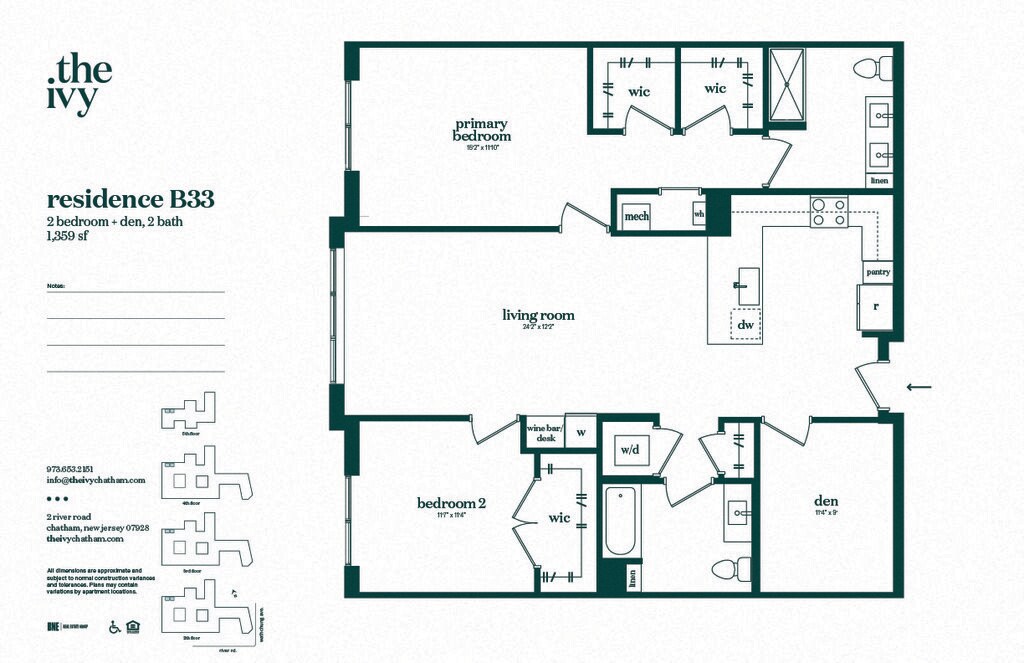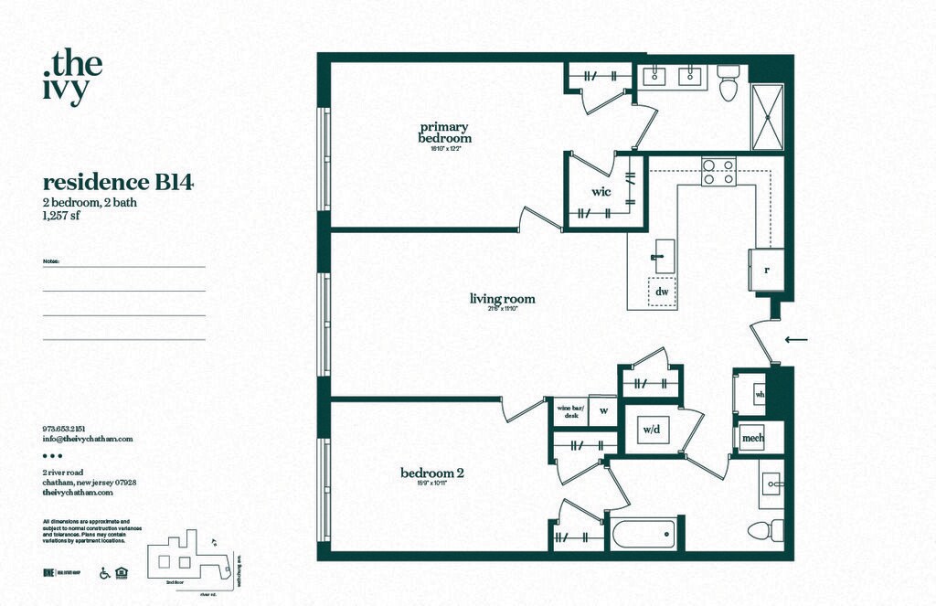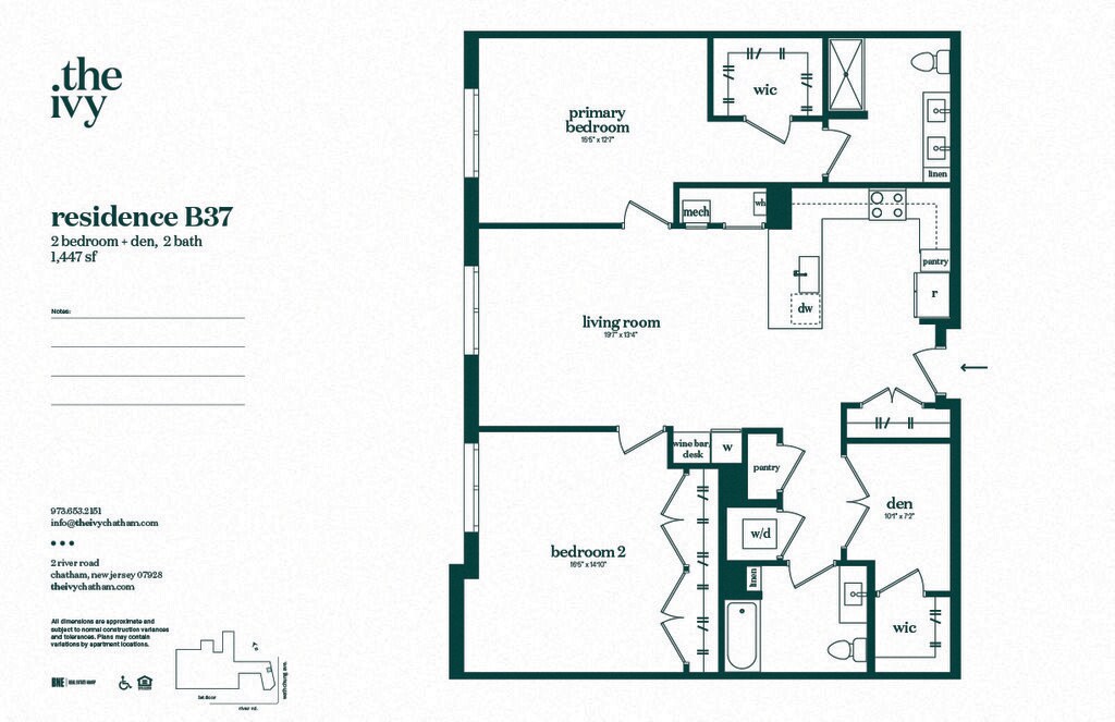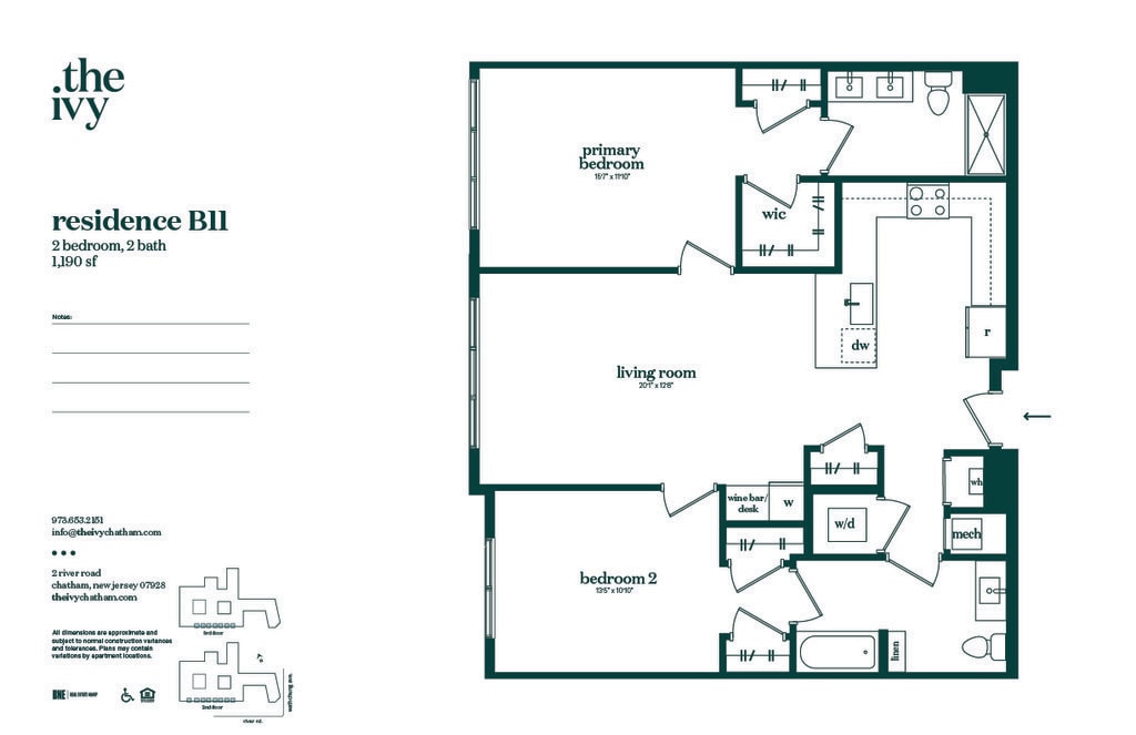 Refined yet welcoming, The Ivy Apartments introduces resort-style living to the quaint and historic town of Chatham, NJ. Our apartments offer over 34,000 square feet of exciting amenity spaces that blur the line between indoor and outdoor living. And with tree-lined streets, local boutiques, vibrant dining spots, and effortless connectivity to New York, our community truly has it all.Our one, two, and two-bedroom plus den homes are as spacious as they are stylish. Soaring nine to eleven-foot ceilings, luxury plank floors, and quartz countertops create a sophisticated ambiance to return to. Shaker vanities, linen storage, and custom wine storage are part of all our apartments in Chatham, NJ, with a select few also boasting wine bars, dens, and elegant kitchen islands.