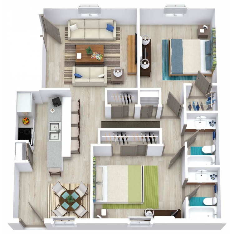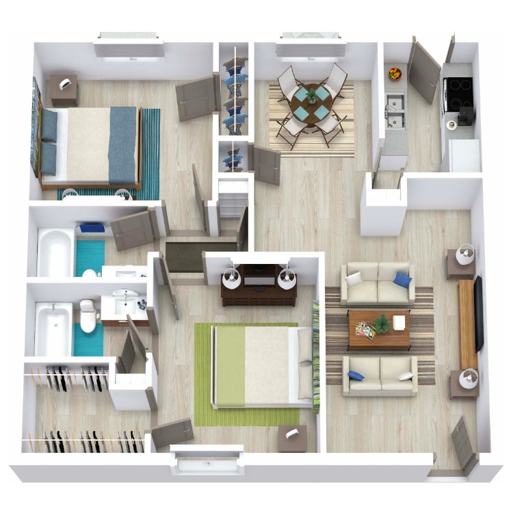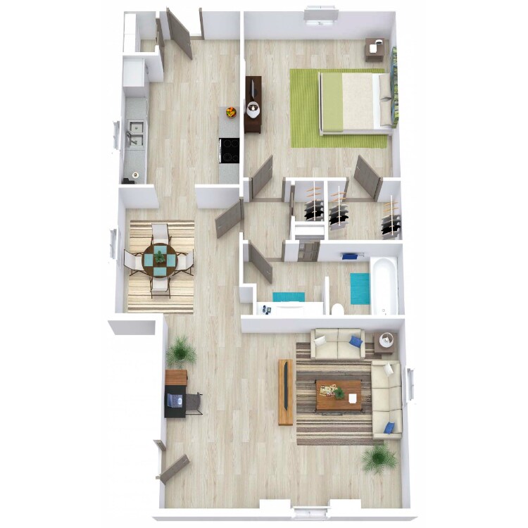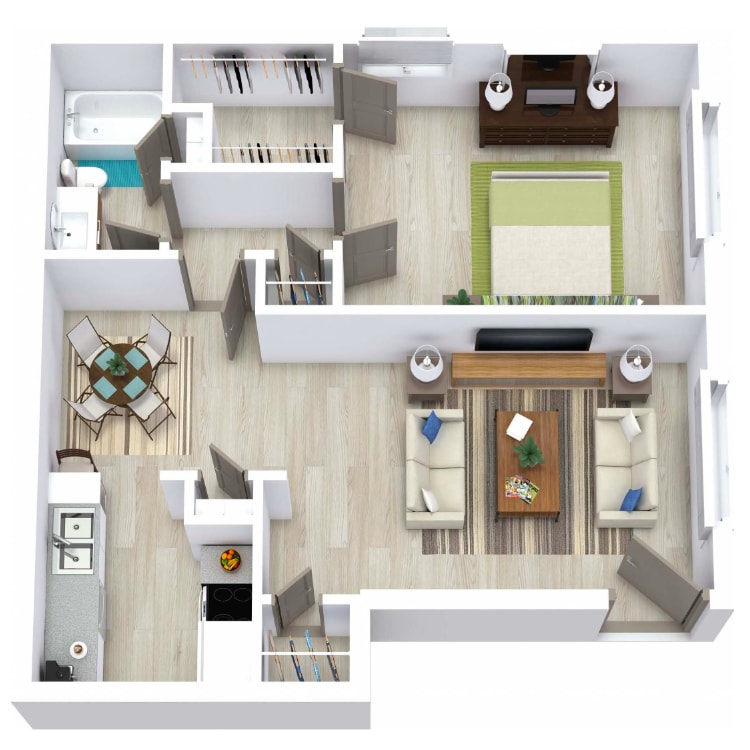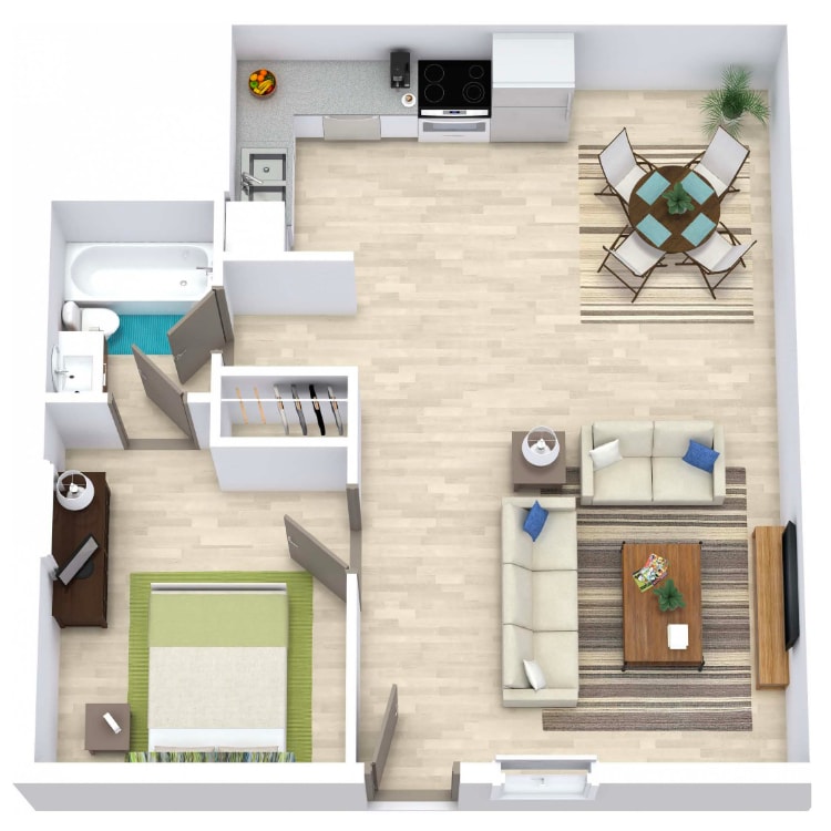 1 Dormitorio, 1 Baño, 740 pies²Disponible AhoraEl más grandeEsta opción tiene las unidades más grandes para este modeloGalería del Modelo