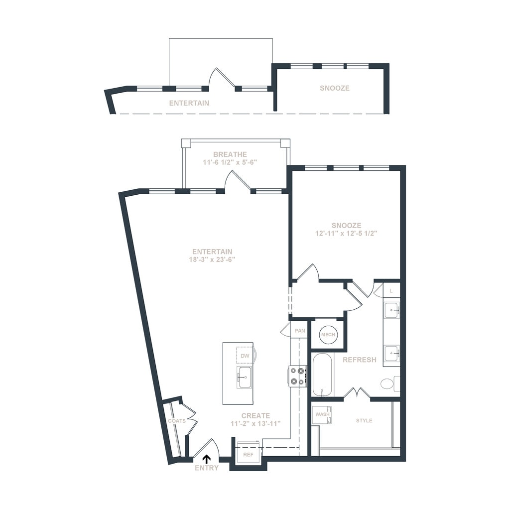 1 Dormitorio, 1 Baño, 799 pies²Disponible AhoraGalería del Modelo