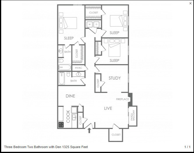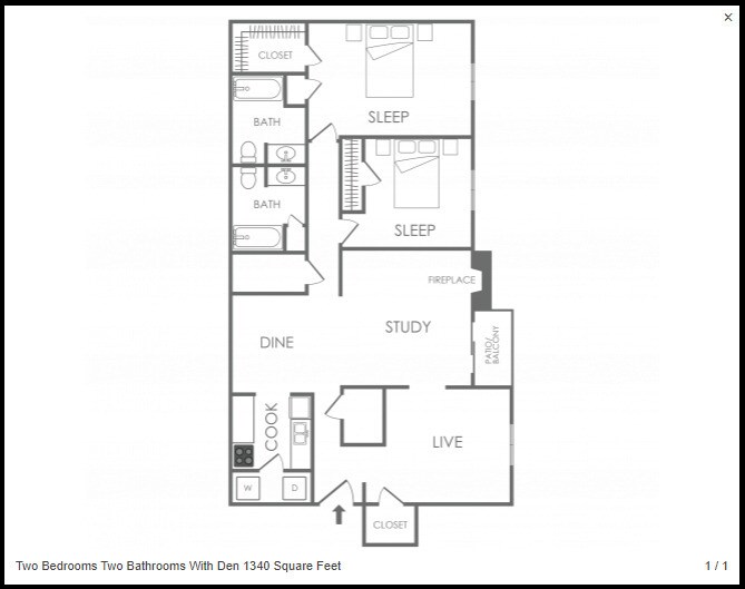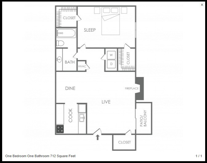 Modelo de apartamento: 1x1$8351 Dormitorio, 1 Baño, 712 sq ftDisponible AhoraPlanosFotos![]()