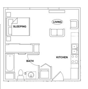 Estudio, 1 Baño, 465 pies²Disponible AhoraGalería del Modelo