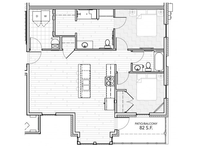 Modelo de apartamento: The Kirk2 Dormitorios, 2 Baños, 946 sq ftNo Disponible![]()
