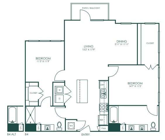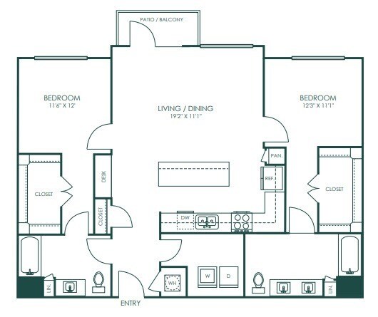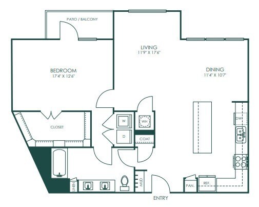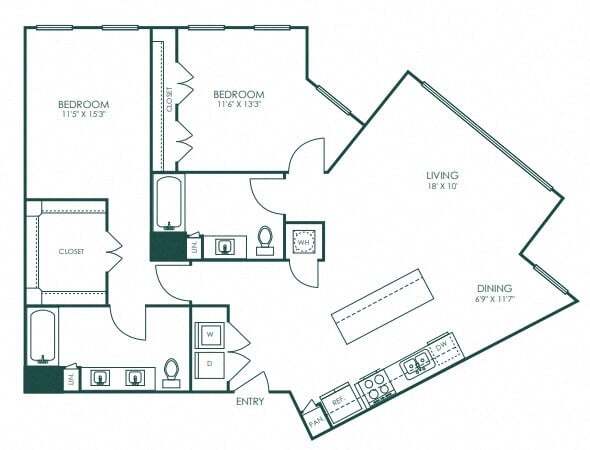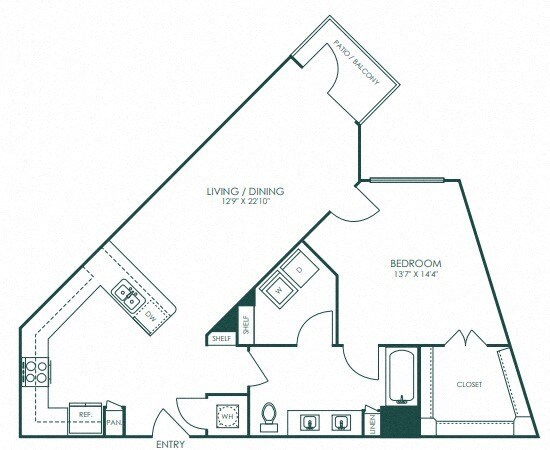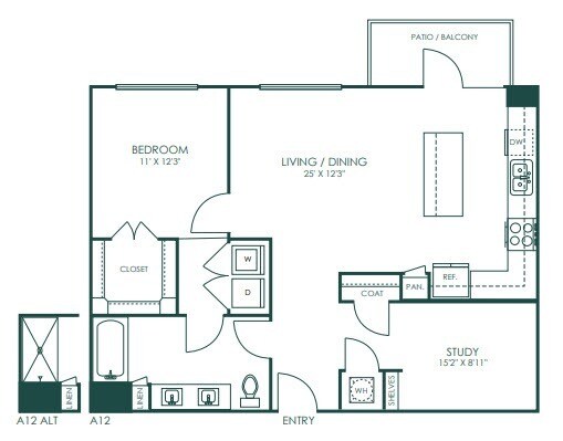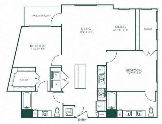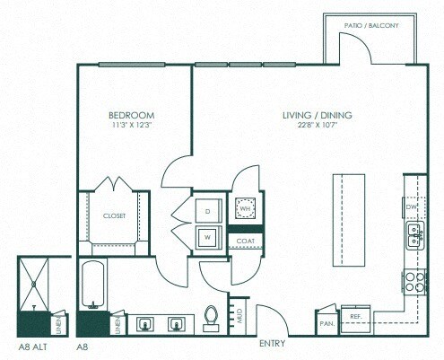 1 Dormitorio, 1 Baño, 664 pies²Disponible AhoraGalería del Modelo