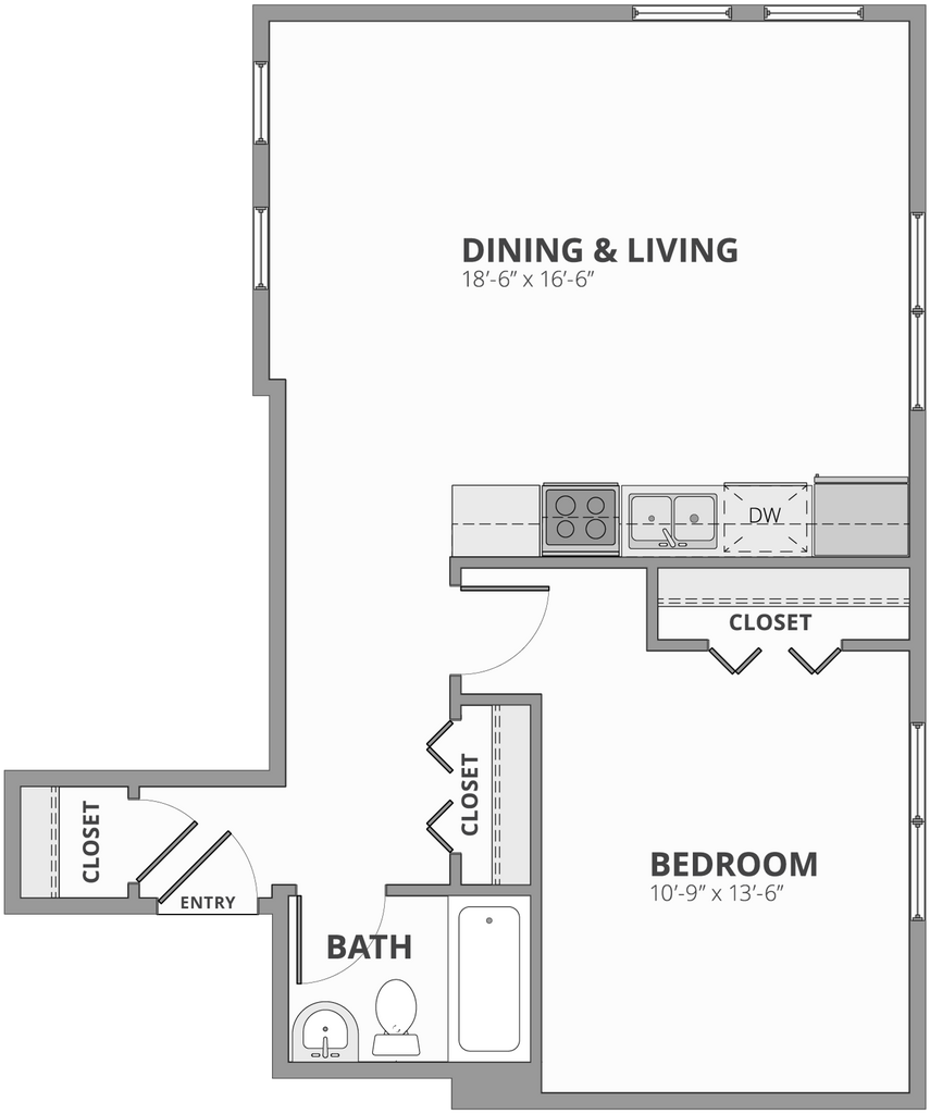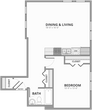 1 Dormitorio, 1 Baño, 550 pies²Disponible AhoraGalería del Modelo