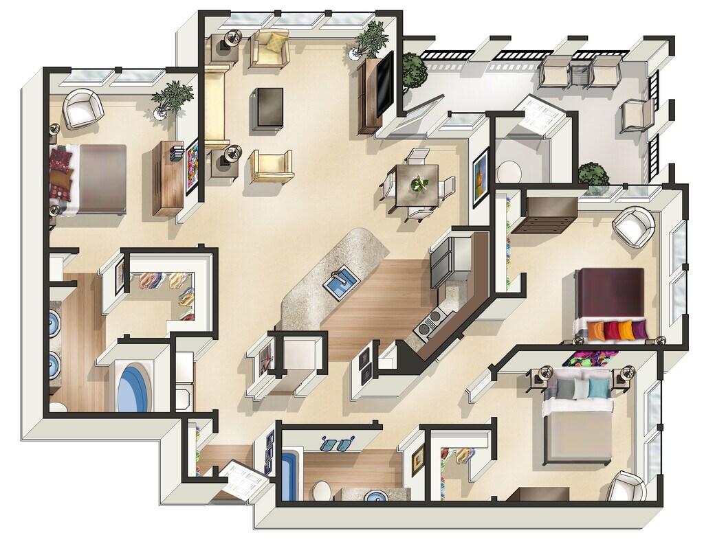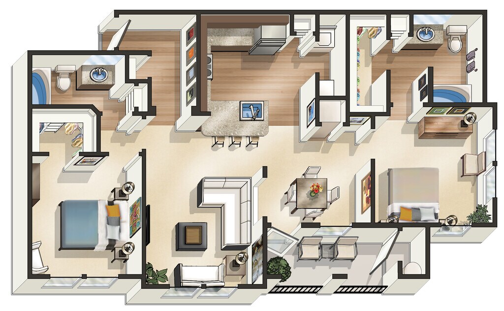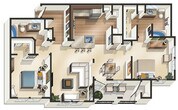 Modelo de apartamento: C13 Dormitorios, 2 Baños, 1301 sq ftDisponible Ahora![]()