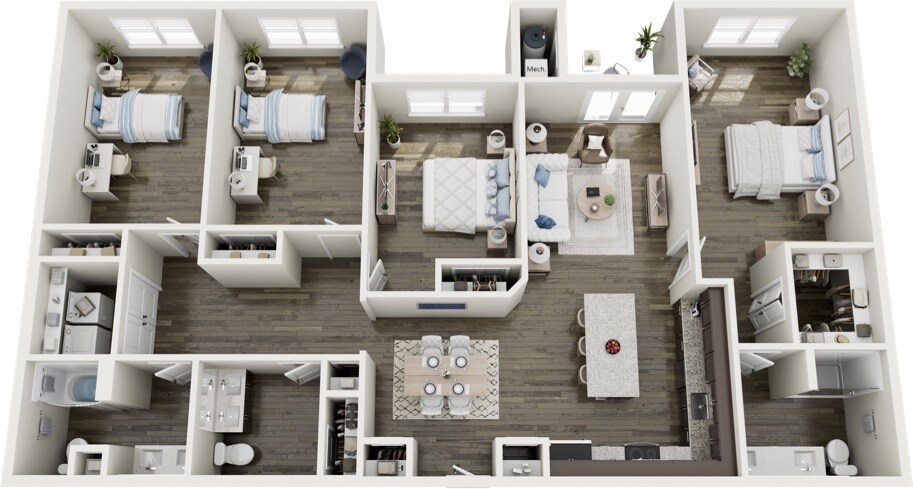 Our spacious 1-, 2-, 3-, and 4-bedroom floor plans are designed to suit your lifestyle, both now and in the future! Each of our homes features modern touches like sleek, energy-efficient appliances, contemporary wood-style flooring, and custom finishes that make your space uniquely yours. Whether you’re looking for a cozy retreat or a larger home for you and your loved ones to grow in, The Jasper has the perfect space for you. At The Jasper, we believe in providing more than just a place to live. Our thoughtfully designed community offers exceptional amenities that enhance your everyday experience. Stay active and healthy in our fully equipped fitness center, unwind by the pool and soak in the sun, or treat your loved ones to a special evening by our cozy fire pits. Our dedicated on-site team is always here to help with anything you need, ensuring your living experience is as comfortable and seamless as possible.