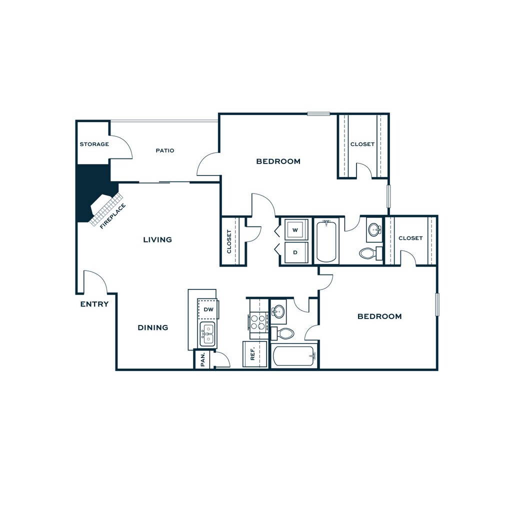 Modelo de apartamento: A2 TraditionalDesde $9901 Dormitorio, 1 Baño, 592 sq ftDisponible Ahora![]()