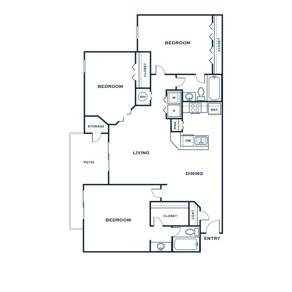 Modelo de apartamento: A3 ModernDesde $1,3051 Dormitorio, 1 Baño, 851 sq ftDisponible Ahora![]()