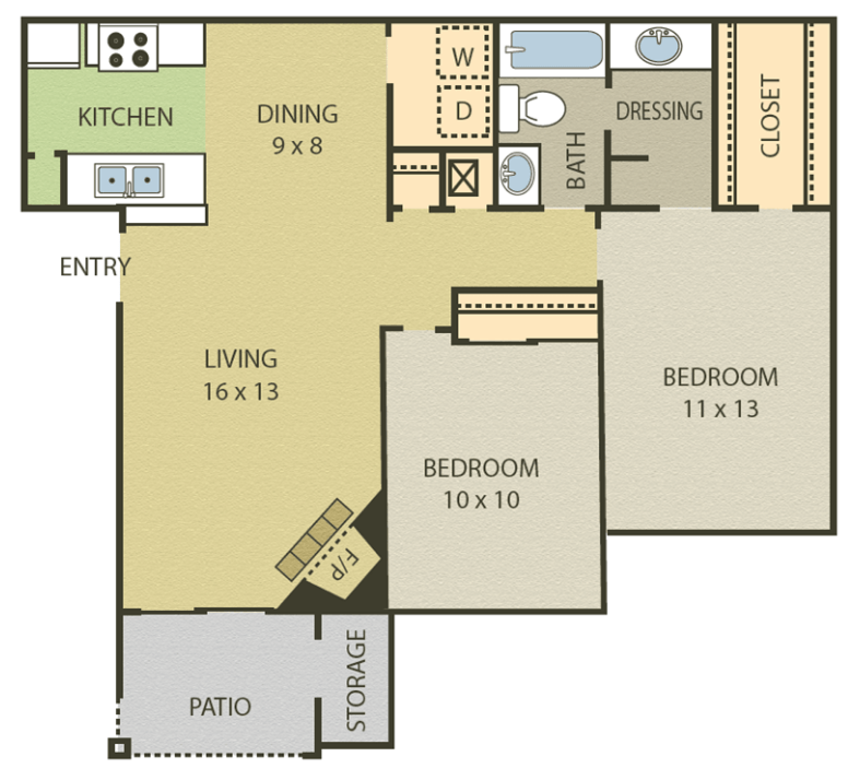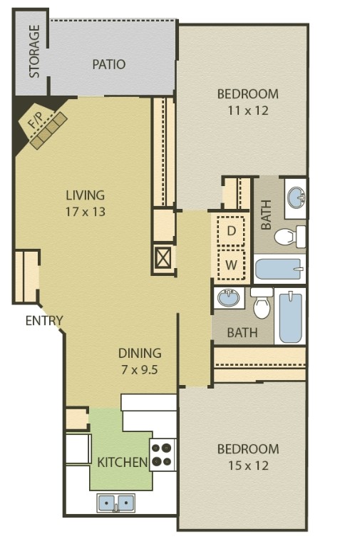 Modelo de apartamento: B22 Dormitorios, 2 Baños, 850 sq ftNo Disponible![]()