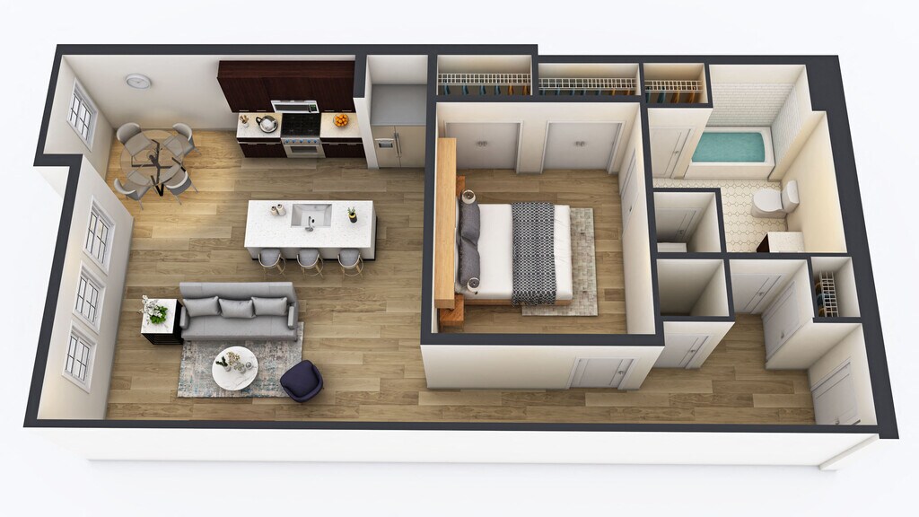 1 Dormitorio, 1 Baño, 721 pies²Disponible AhoraGalería del Modelo