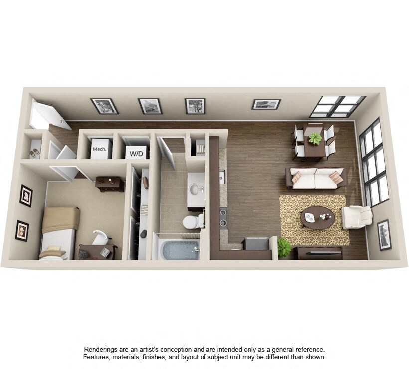 1 Dormitorio, 1 Baño, 695 pies²Disponible AhoraGalería del Modelo