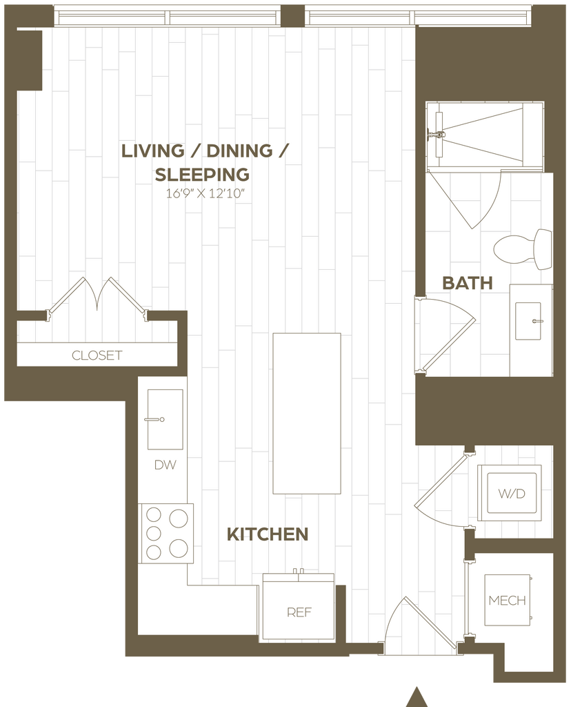 Estudio, 1 Baño, 510 pies²Disponible AhoraGalería del Modelo