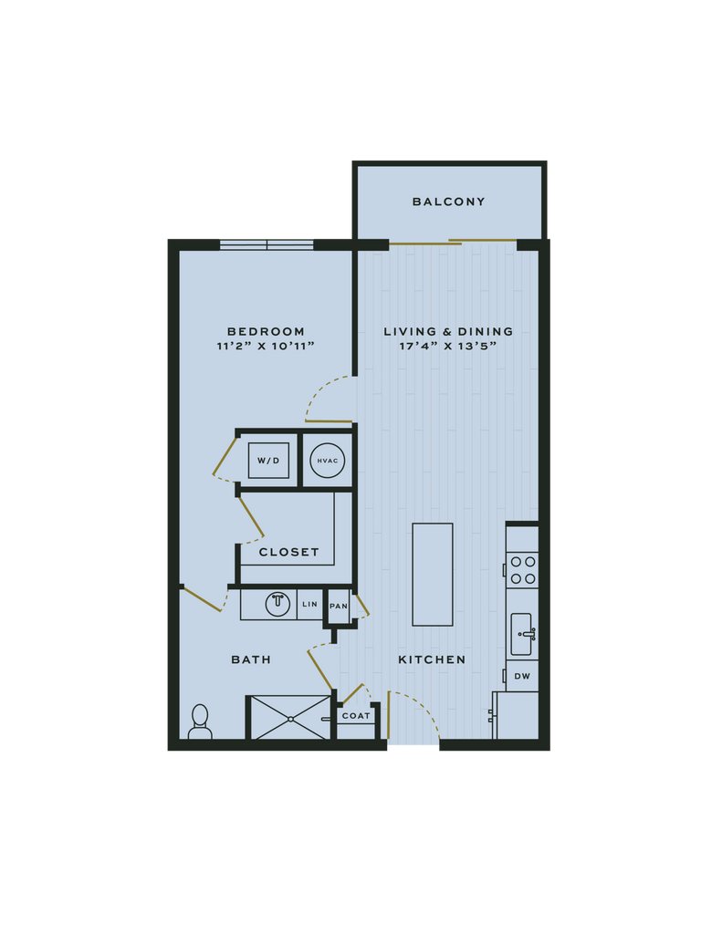 1 Dormitorio, 1 Baño, 742 pies²Disponible AhoraGalería del Modelo