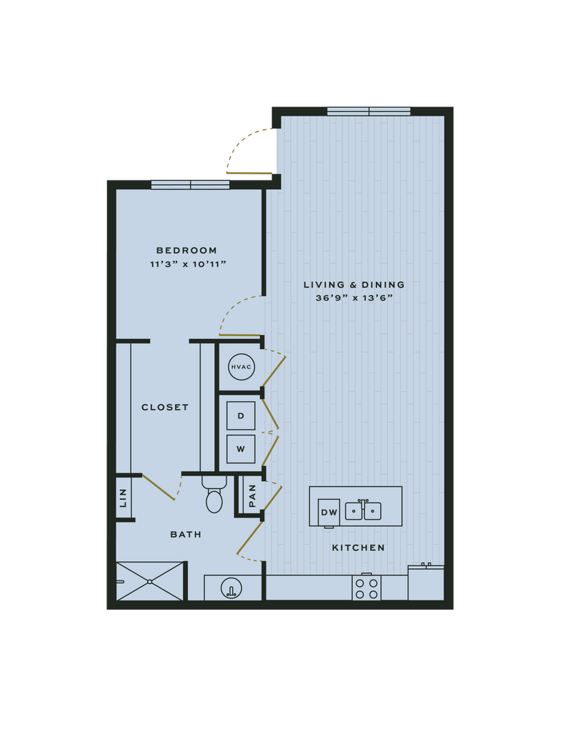 1 Dormitorio, 1 Baño, 755 pies²Disponible AhoraGalería del Modelo